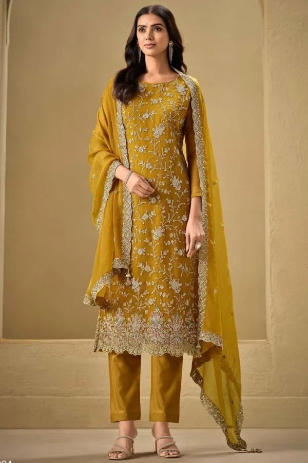 Originating from Punjab, the Patiala suit features a short kameez paired with a voluminous, pleated salwar. This style offers comfort and a distinctive look, making it popular for casual and festive occasions.Patiala suits are popular for their wider-shaped pants that give a fuller look and add a touch of classic