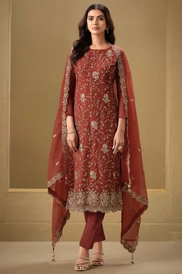 The churidar suit comprises a fitted kameez paired with churidar pants that gather at the ankles, creating graceful folds. It’s a versatile style suitable for both casual and formal events.